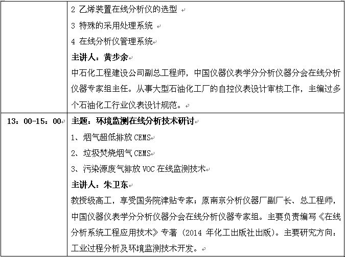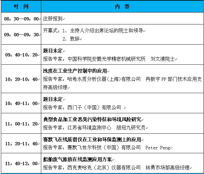 “第十二屆中國(guó)在線分析儀器應(yīng)用及發(fā)展國(guó)際論壇暨展覽會(huì)”大會(huì)日程表