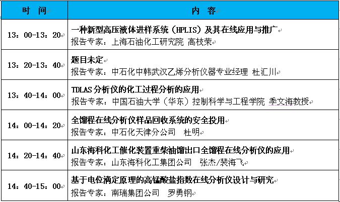 專題一:石油化工在線分析專題報(bào)告 時(shí)間:2019年11月14日(星期四)09:30-12:00 地點(diǎn):M2層南京廳 主持人:傅澤宏高級(jí)工程師