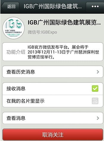 廣州綠色建筑展,2013年12月11日-13日在廣州琶洲保利世貿(mào)博覽館隆重開幕。目前已啟動官方預(yù)登記(http://www.igbchina.com/can-guan-yu-deng-ji-2/),登記即有六重好禮大贈送,只限前1000名。輕輕動下手指趕快關(guān)注廣州綠建展吧。 您可以通過以下方式關(guān)注廣州綠色建筑展: 方法一: 打開添加朋友頁面—查找微信公眾賬號