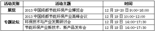 成都市政府主辦,以“節(jié)能環(huán)保 西部新機(jī)遇”為主題的2013中國(guó)成都節(jié)能環(huán)保產(chǎn)業(yè)博覽會(huì)將于12月19日—20在成都市金堂縣舉行。成都市經(jīng)委、市科技局、市環(huán)保局、市投促委、市博覽局、金堂縣人民政府、省環(huán)境保護(hù)產(chǎn)業(yè)協(xié)會(huì)等部門聯(lián)合承辦。歡迎國(guó)內(nèi)外相關(guān)領(lǐng)域企事業(yè)單位及專業(yè)人士屆時(shí)蒞臨博覽會(huì)參觀參展,共享西部行業(yè)盛會(huì),助推節(jié)能環(huán)保產(chǎn)業(yè)發(fā)展。(更多展會(huì)詳情請(qǐng)關(guān)注大會(huì)官網(wǎng):http://www.cdesep.com) 專業(yè)展覽與行業(yè)論壇互動(dòng) 近300家國(guó)內(nèi)外節(jié)能環(huán)保領(lǐng)域企業(yè)將攜帶涉及水處理、環(huán)境監(jiān)測(cè)、固廢處理、節(jié)能等領(lǐng)域的技術(shù)設(shè)備來蓉展出參展,舉行“2013中國(guó)成都節(jié)能環(huán)保產(chǎn)業(yè)高峰會(huì)議”、“環(huán)保技術(shù)與產(chǎn)業(yè)發(fā)展研討會(huì)”、“節(jié)能環(huán)保產(chǎn)業(yè)新技術(shù)、新產(chǎn)品發(fā)布會(huì)”等論壇活動(dòng)。