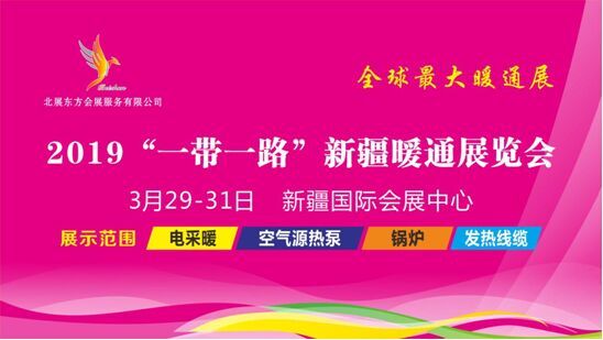 北展東方新疆暖通展——明年最值得期待的暖通盛宴 2019年3月29- 31日 中國(guó) • 新疆 2019“一帶一路”新疆暖通展覽會(huì)隆重開幕 地址:新疆•國(guó)際會(huì)展中心 (烏魯木齊市水磨溝區(qū)紅光山路3號(hào))
