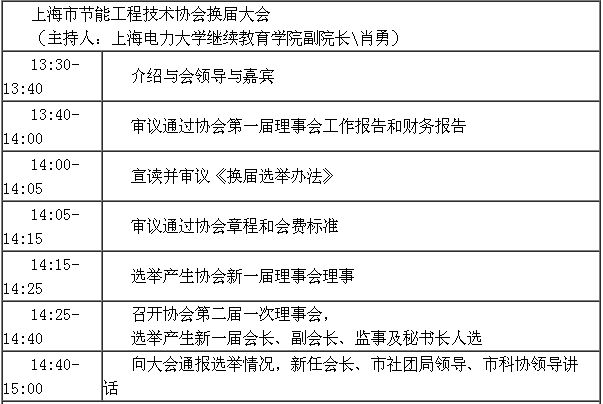 上海市節(jié)能工程技術(shù)協(xié)會換屆大會暨創(chuàng)新論壇 會議議程